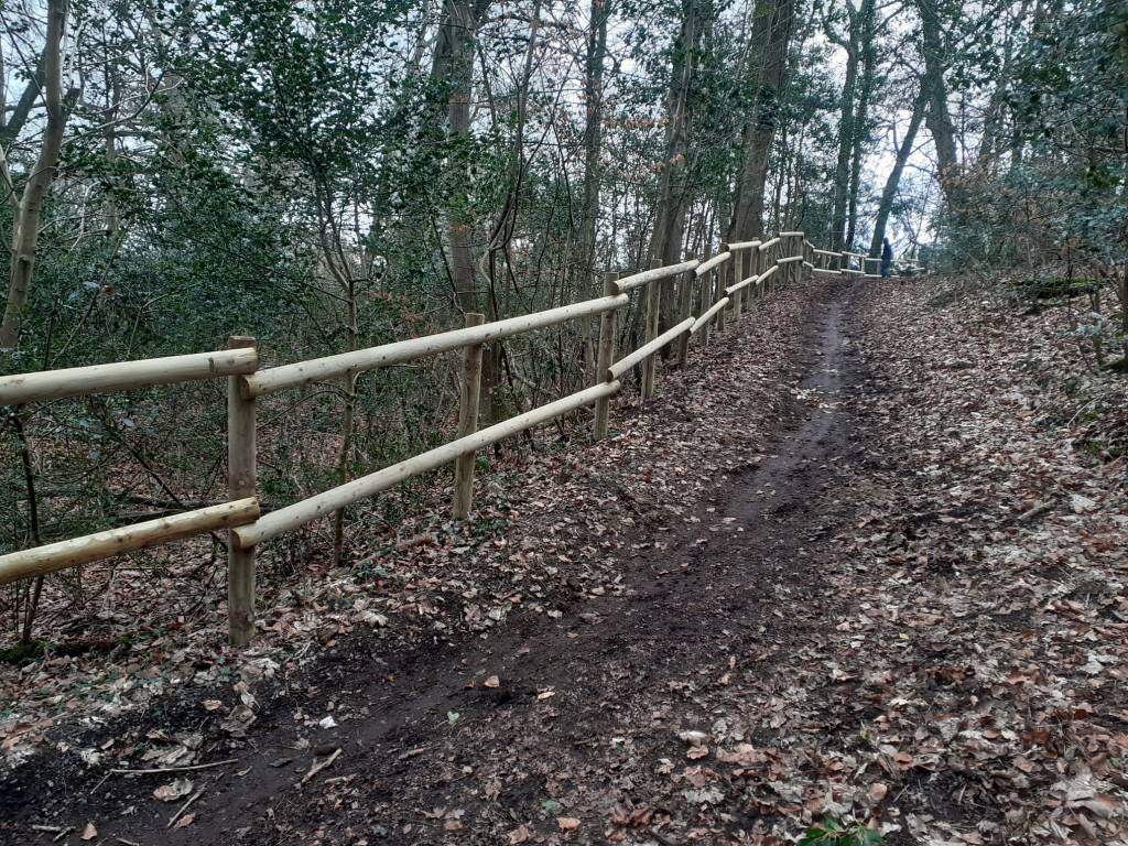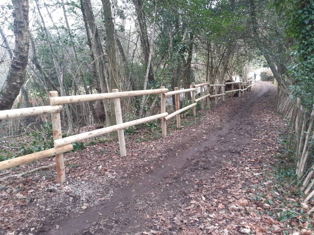 Fencing repaired on permissive route along Oyster Hill which takes riders and other foot traffic off a particularly twisty bit of road. We replaced all of the wooden fencing along the route to maintain the safety of this path. This cost around £4,000.