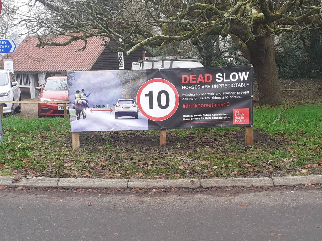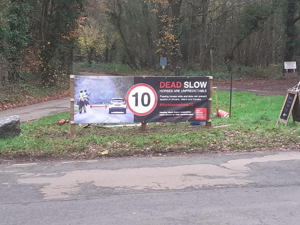 Working with local landowners we have erected a number of safety signs around the village portraying the British Horse Society messaging to pass a horse safely on the road.